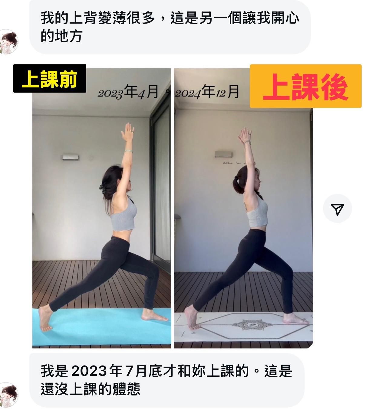 過去的我,把成就感放在拍攝漂亮的瑜珈照、倒立照等等;而現在,我的成就感來自學生們的對比照