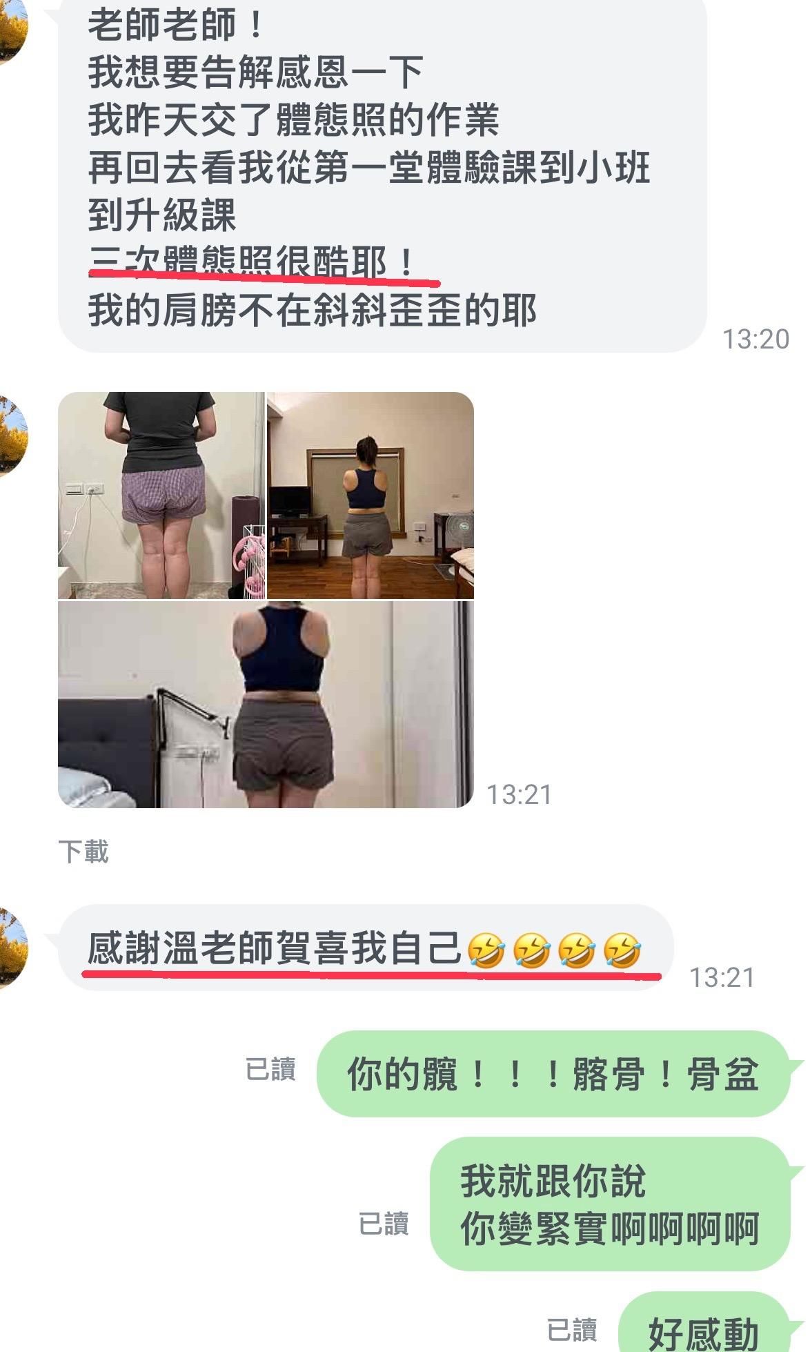 至今,我已幫助超過100+ 位學員,從上半身的肩背到下半身的臀腿,從內而外完成了體態的改變。