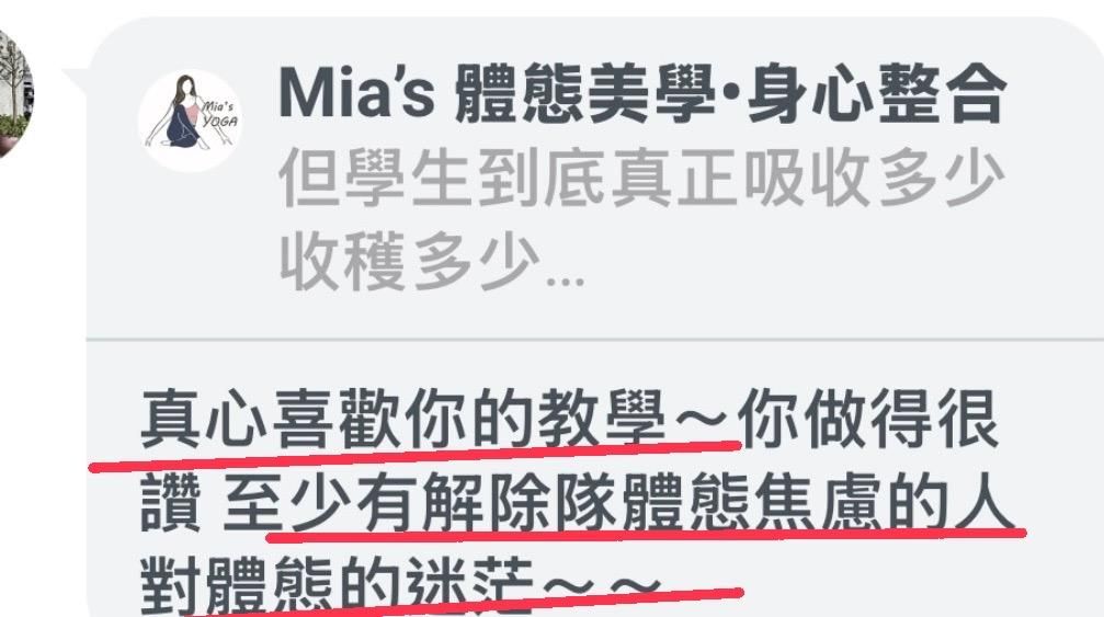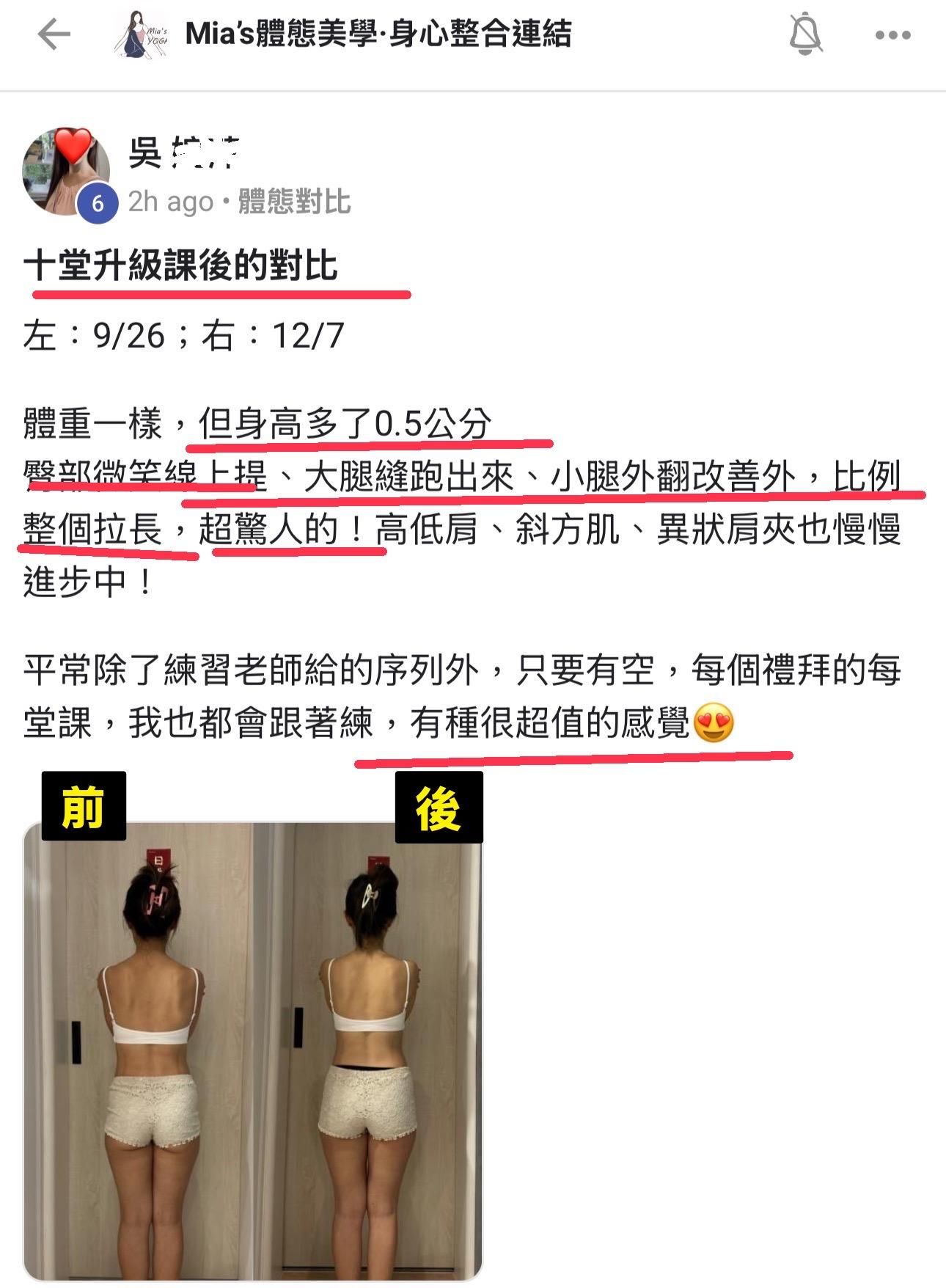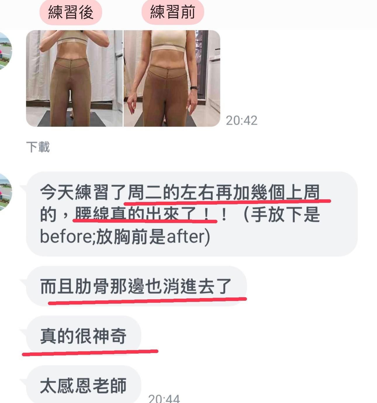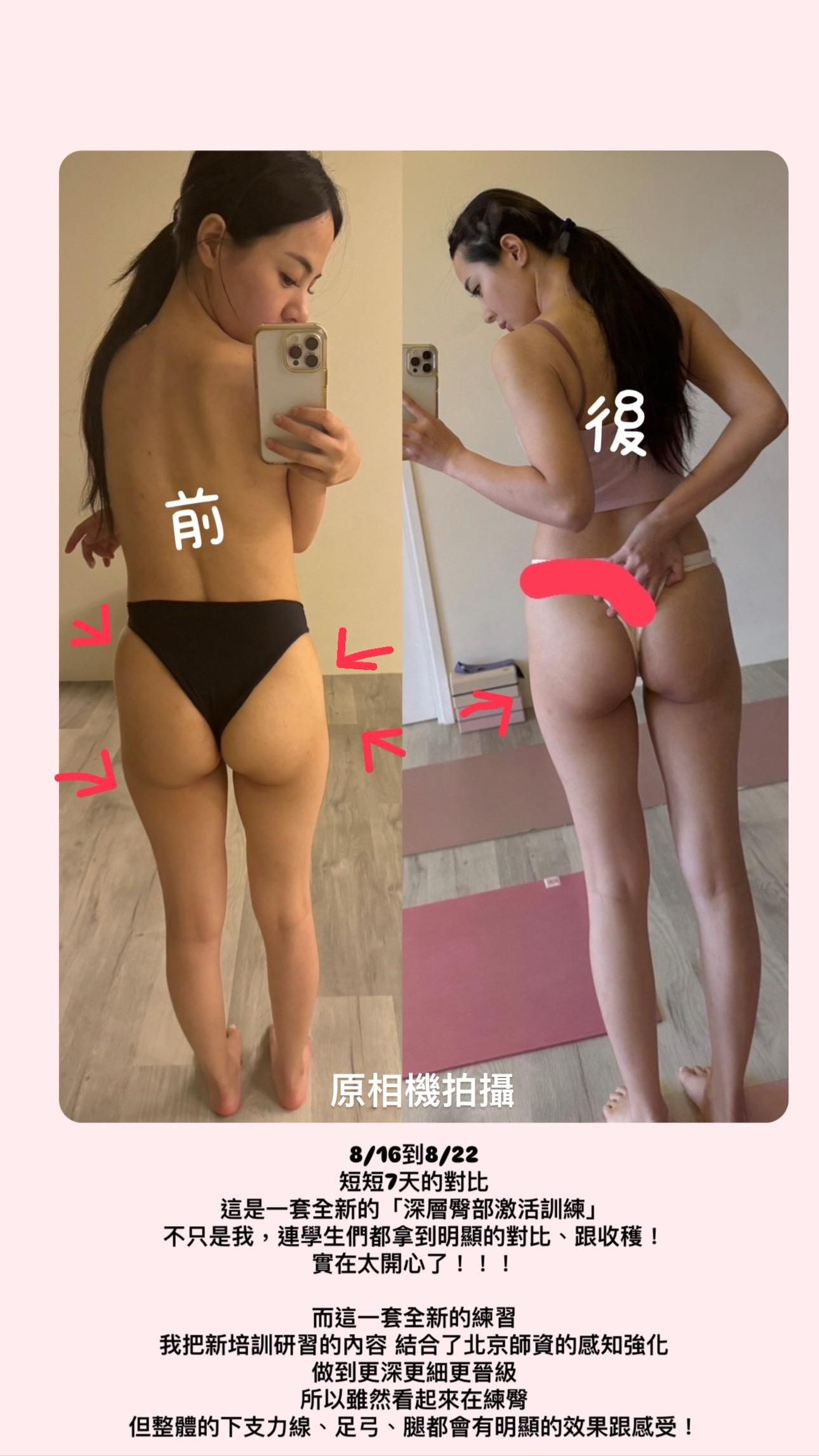 至今,我已幫助超過100+ 位學員,從上半身的肩背到下半身的臀腿,從內而外完成了體態的改變。