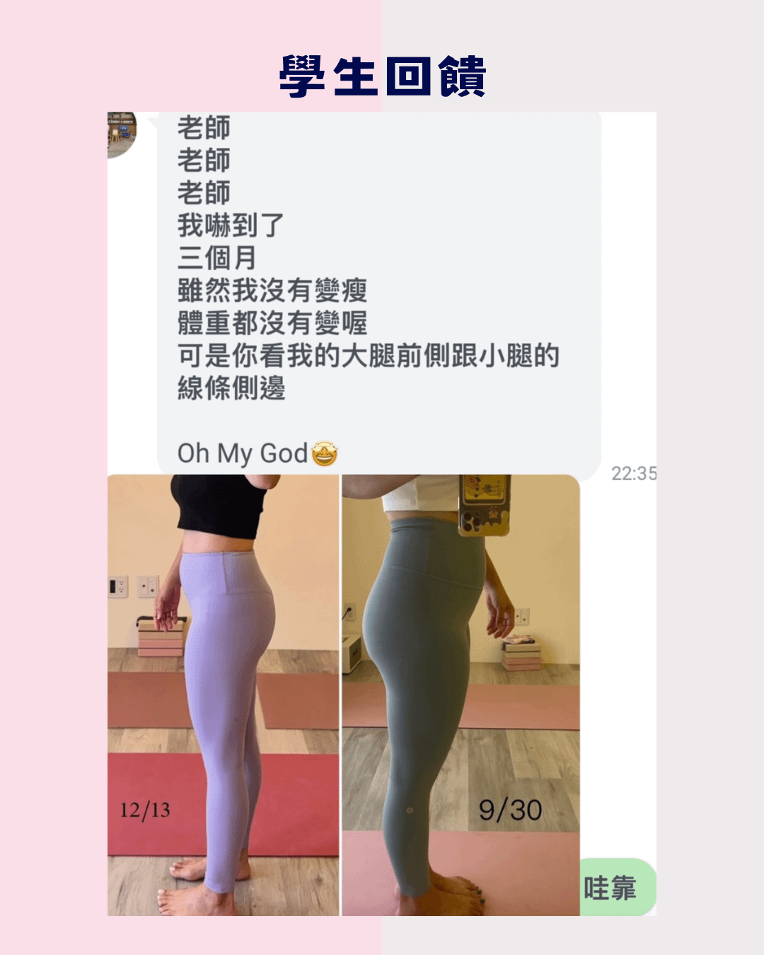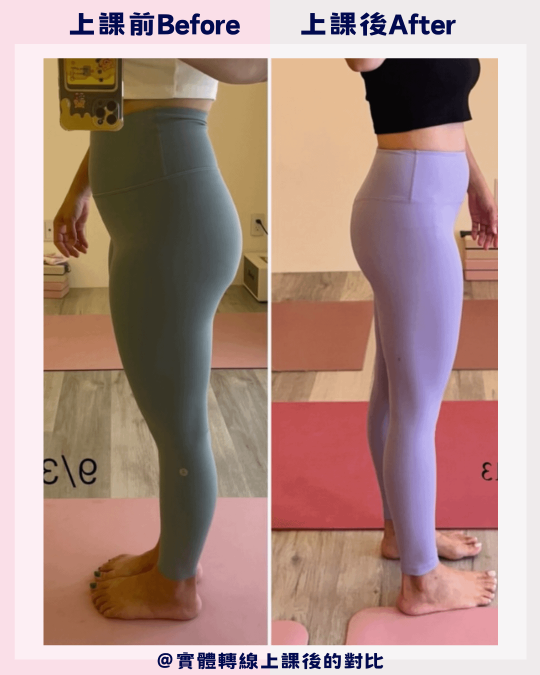 過去的我,把成就感放在拍攝漂亮的瑜珈照、倒立照等等;而現在,我的成就感來自學生們的對比照