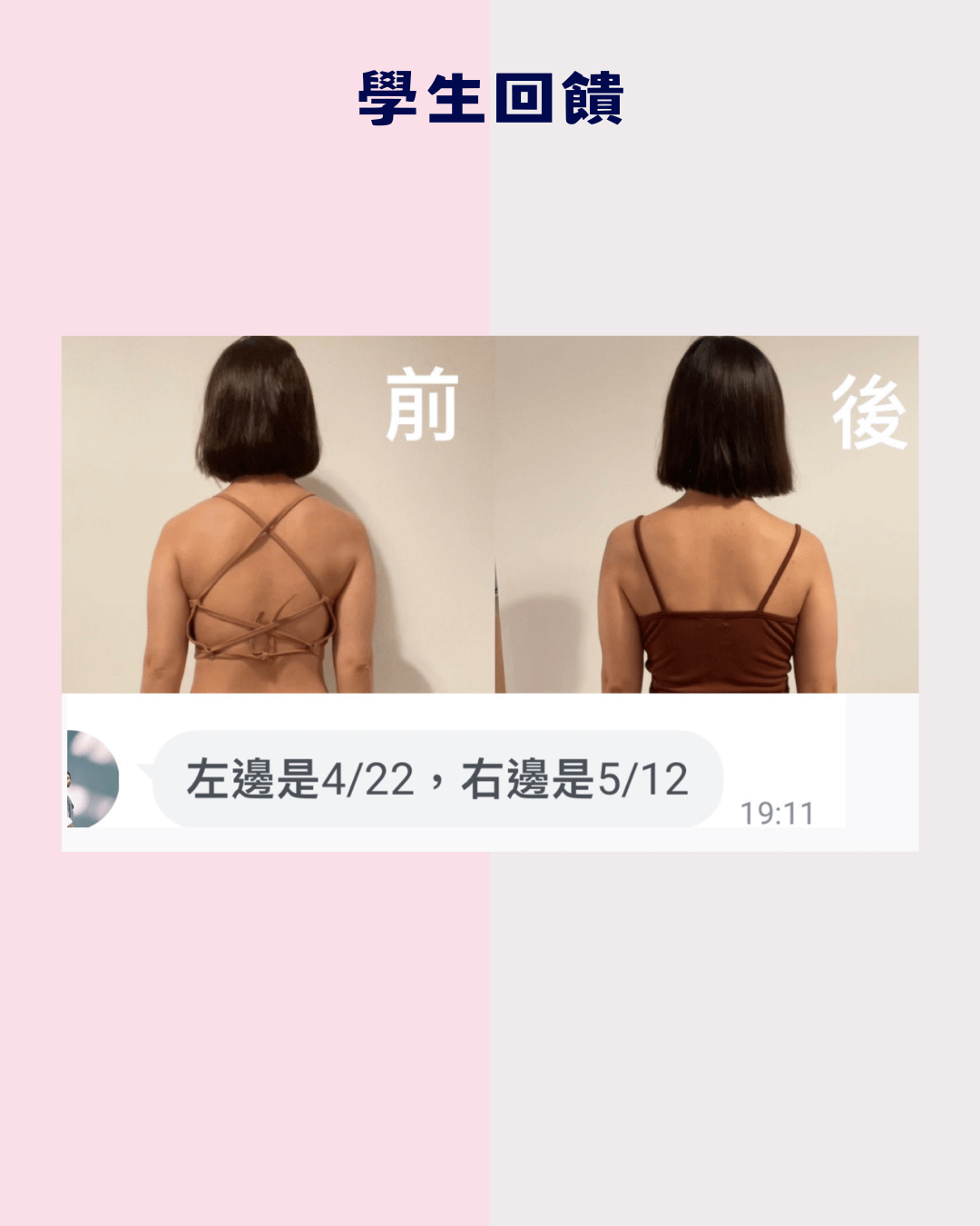 至今,我已幫助超過100+ 位學員,從上半身的肩背到下半身的臀腿,從內而外完成了體態的改變。