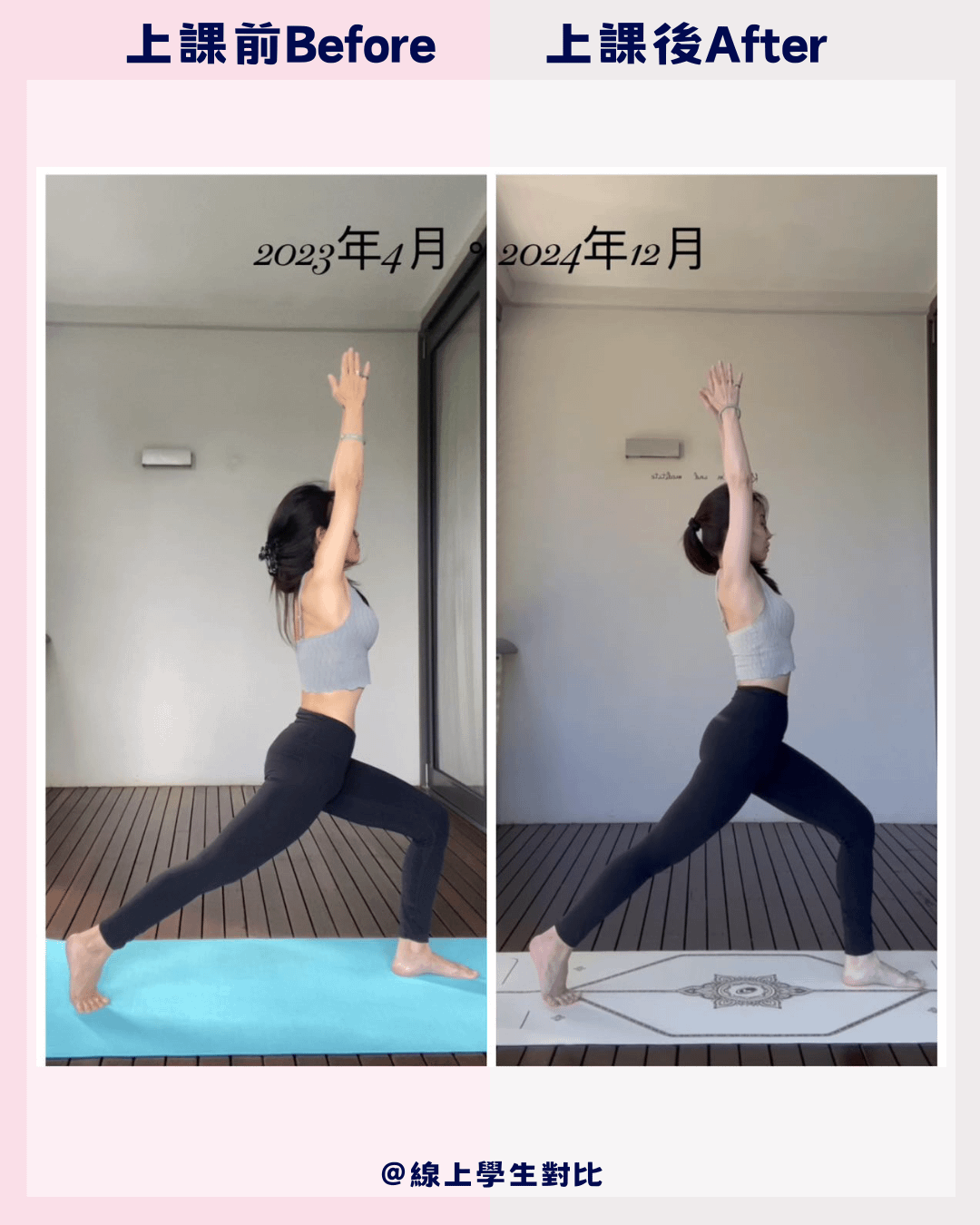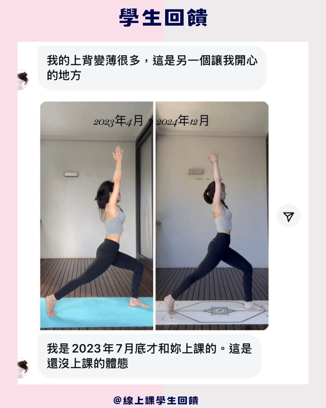 過去的我,把成就感放在拍攝漂亮的瑜珈照、倒立照等等;而現在,我的成就感來自學生們的對比照